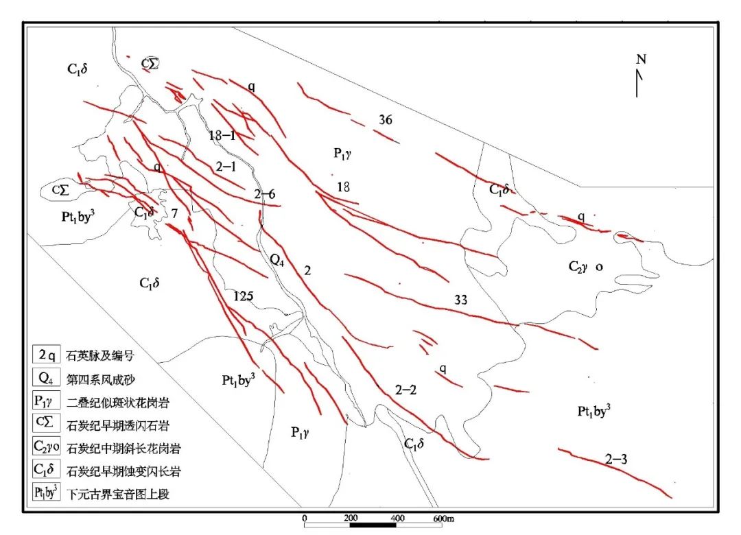 在地質演化過程中,區域構造運動多次疊加,礦區形成受不同應力作用產生的構造裂隙。這些構造裂隙以北西向為主,為主要的導礦通道和容礦空間。華里西期受構造運動的影響,區內出現大面積的中酸性巖漿活動,先后侵入志留紀蝕變閃長巖、石炭紀透閃石巖、石炭紀斜長花崗巖、二疊紀似斑狀花崗巖。巖漿的多期次活動同時伴隨北東、北西向兩組小斷裂的形成。巖石中以金為主的有用組分經過多次遷移、疊加,最終在硅質熱液充填的小斷裂中富集,形成多條含金石英脈。石英脈兩側的蝕變圍巖及具細小網狀石英脈穿插的蝕變圍巖也可能成礦。由此,形成了該區以石英脈為主的金礦體。多條石英脈的組合,則形成較富的金礦床,屬中低溫巖漿熱液-構造充填型礦床。