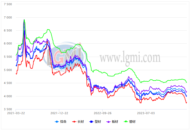 具體來看,蘭格鋼鐵長材絕對價格指數為3766元,較去年同期下降14.8%;蘭格鋼鐵型材絕對價格指數為3997元,較去年同期下降12.5%;蘭格鋼鐵板材絕對價格指數為4175元,較去年同期下降11.1%;蘭格鋼鐵管材絕對價格指數為4518元,較去年同期下降10.6%。