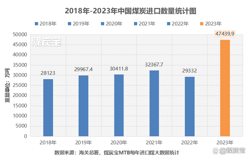 從印尼煤炭出口國家來看,2023年,印尼對中國出口煤炭最多,為2.157億噸,其次是印度,為1.084億噸。據我國海關總署公布的數據顯示,2023年,我國共進口煤炭47439.9萬噸(約4.74億噸),同比增加18107.9萬噸,增長61.8%,進口煤炭來源國主要有印尼、俄羅斯、澳大利亞、蒙古國等。其中,印尼占我國進口煤炭總量的45.47%,是我國第一大煤炭進口來源。