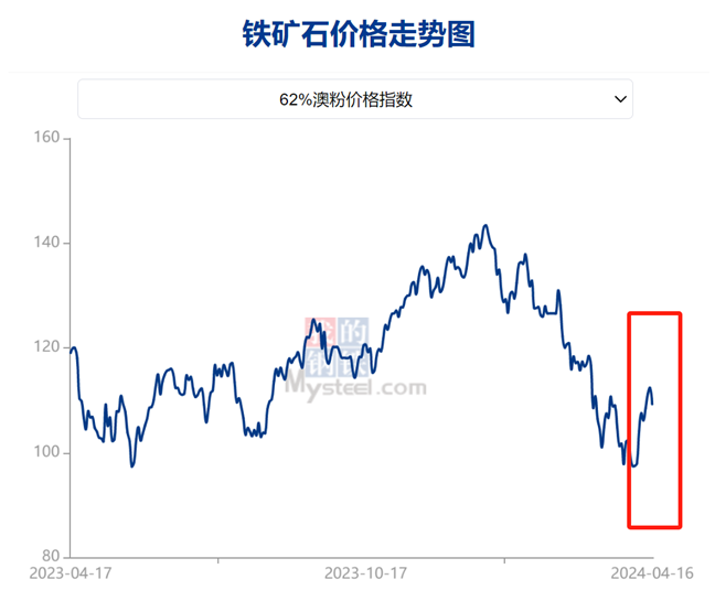 自清明節(jié)后,鐵礦石價(jià)格表現(xiàn)強(qiáng)勁。截止4月16日,Mysteel鐵礦石62%澳粉指數(shù)為109.25美元/干噸,雖然下跌3.1美元/干噸,但仍較節(jié)前最后一個(gè)工作日上漲9.9美元/干噸,漲幅為9.96%。市場(chǎng)情緒明顯好轉(zhuǎn),鐵礦石價(jià)格反彈,漲幅超大家預(yù)期,鐵礦石的春天是否到來了?