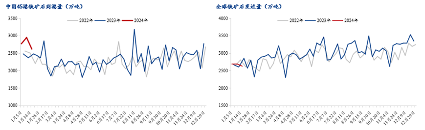 根據(jù)Mysteel全球鐵礦石發(fā)運(yùn)量數(shù)據(jù)顯示,近期由于臺(tái)風(fēng)影響,部分礦山港口檢修,最新周度全球鐵礦發(fā)運(yùn)總量大幅回落。上周(4.8-4.12)全球發(fā)運(yùn)量周值為3245.3萬噸,周環(huán)比減少142.5萬噸。但今年累計(jì)發(fā)運(yùn)情況看,全球鐵礦石發(fā)運(yùn)累計(jì)同比增量為1512.5萬噸,其中巴西累計(jì)同比增量為1254.8萬噸,非主流累計(jì)同比增量為1284.5萬噸,澳洲則表現(xiàn)為累計(jì)同比減少1026.8萬噸。受天氣因素影響,預(yù)計(jì)近幾周全球鐵礦石發(fā)運(yùn)量有所下降,待澳洲颶風(fēng)擾動(dòng)暫告一段落后,預(yù)計(jì)發(fā)運(yùn)水平還會(huì)有顯著增加。到港量與全球發(fā)貨量數(shù)據(jù)相似,根據(jù)Mysteel45港鐵礦石到港量數(shù)據(jù)顯示,上周(4.8-4.12)值為2437萬噸,周環(huán)比減少4萬噸。今年以來,45港鐵礦石到港量累計(jì)同比增加1994萬噸,其中澳洲累計(jì)同比減少1120萬噸,巴西累計(jì)同比增加1836萬噸,非主流累計(jì)同比增加1278萬噸。
