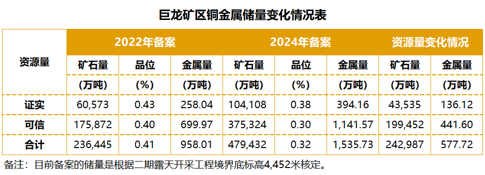 2023年多寶山銅業實現礦產銅11萬噸、金2.6噸。本次新增后,多寶山銅業保有銅資源量超過560萬噸。