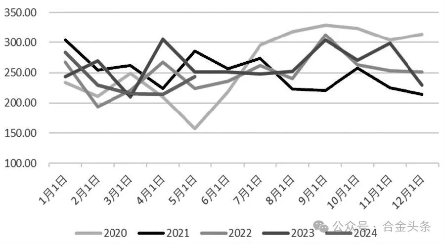 圖為硅鐵月度產量(單位:萬噸)