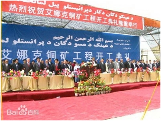 根據最終簽署的協議,艾娜克銅礦項目生產規模為年產精煉銅22萬噸(計劃擴大到年產30萬噸),項目建設期5年,開采期限30年。配套設施包括一個40萬千瓦的火電廠、一個水源地泵站和一個磷肥廠,以及學校、醫院、清真寺等公共服務設施,還計劃修建鋼廠和鐵路等??偼顿Y將超過100億美元。