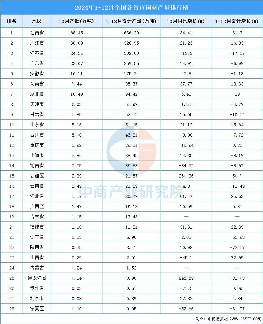 中國銅材生產第一大?。寒a量達到636.2萬噸,超過浙江+江蘇總和