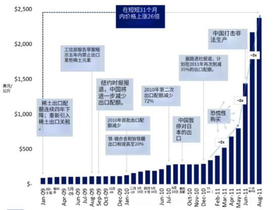 氧化鏑價格在2009年1月-2011年8月31個月內上漲26倍