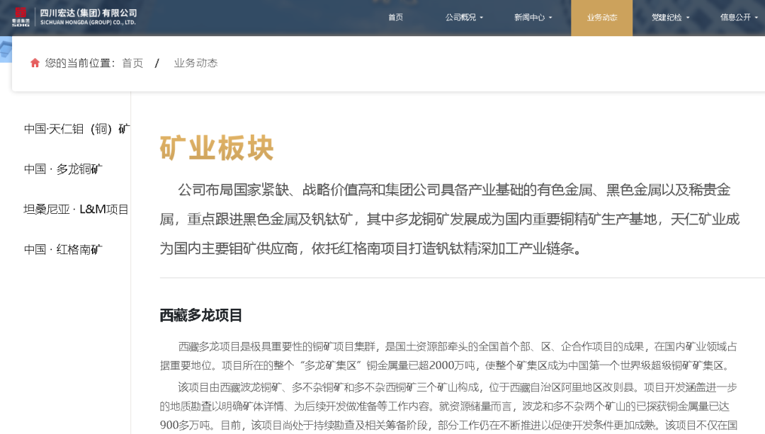 作為蜀道集團礦業板塊的核心直屬企業,宏達集團在全球礦業資源投資領域早已成果斐然。官網資料顯示,宏達集團參與投資了世界超大型銅礦項目 —— 西藏多龍銅礦,該銅礦儲量巨大,一旦全面開發,將極大提升我國在全球銅礦資源領域的話語權;在東非,集團投資建設了首個長流程鋼鐵礦冶聯合項目 —— 坦桑尼亞礦冶一體項目(控股),助力非洲當地礦業產業升級,同時也為我國鋼鐵產業發展提供穩定的原料供應;此外,在國內,宏達集團參與了中國儲量大、資源價值高的釩鈦磁鐵礦項目 —— 攀枝花紅格南礦及大型鉬銅多金屬礦等戰略性礦產資源開發,累計參與戰略性礦產資源達 8 宗。
